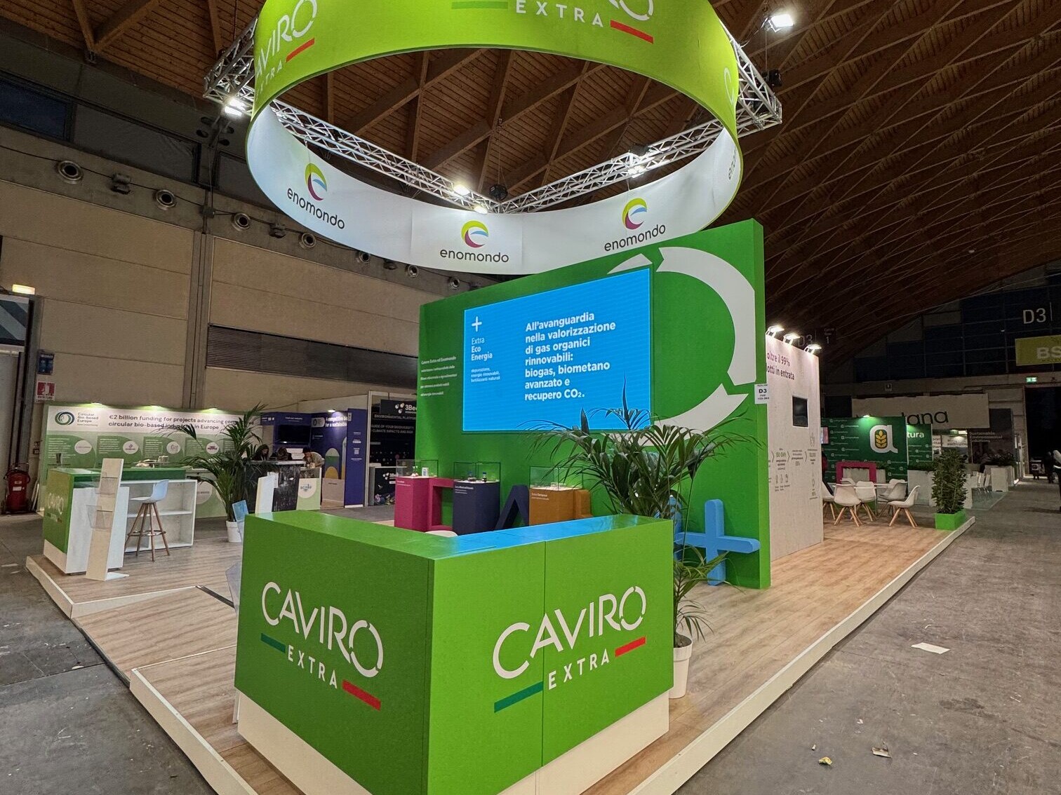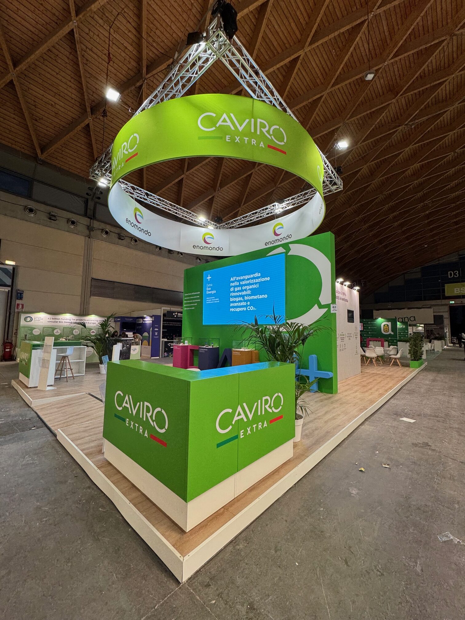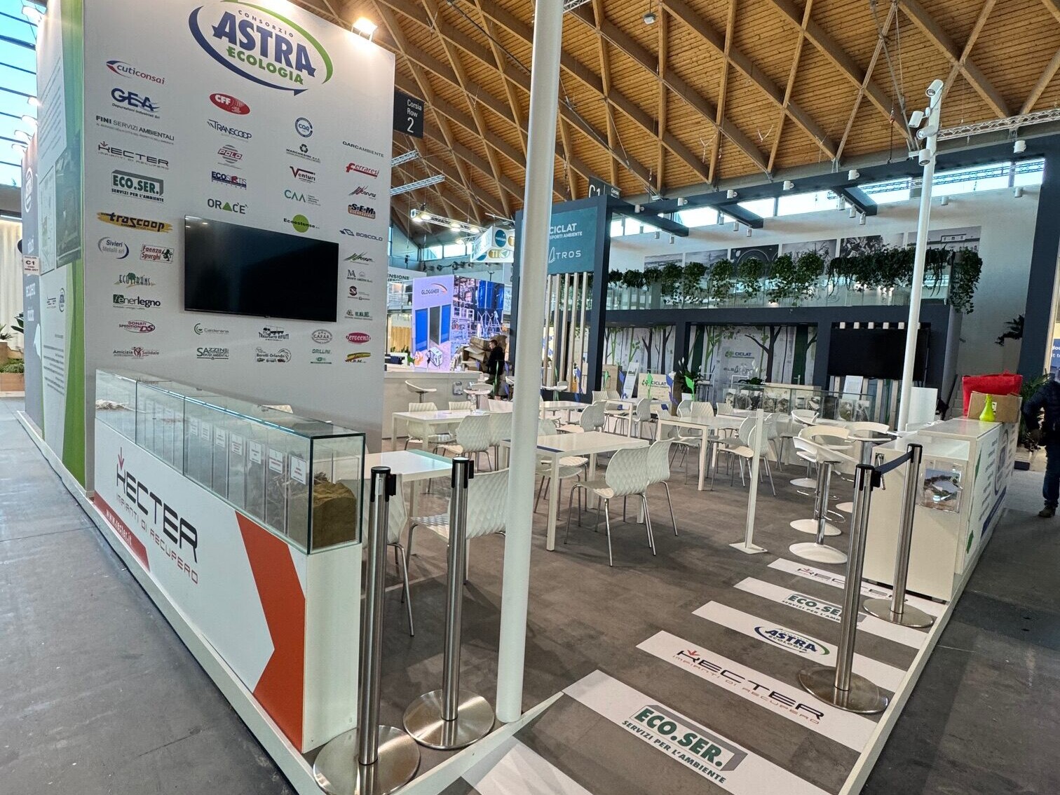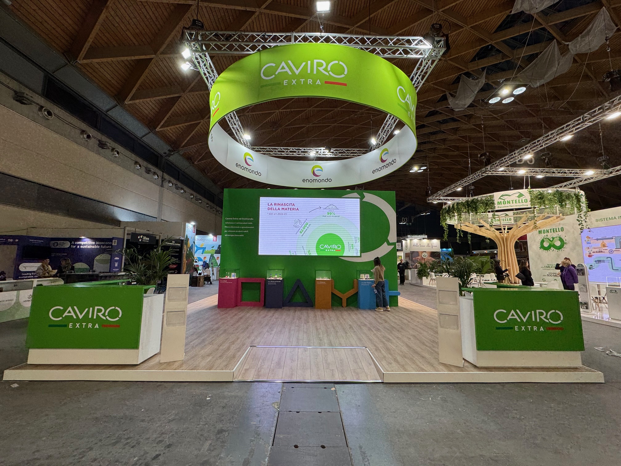 Qui sotto trovate alcuni esempi di stand realizzati in conformità con i principi della sostenibilità: progetti che uniscono design, funzionalità e responsabilità ambientale.
