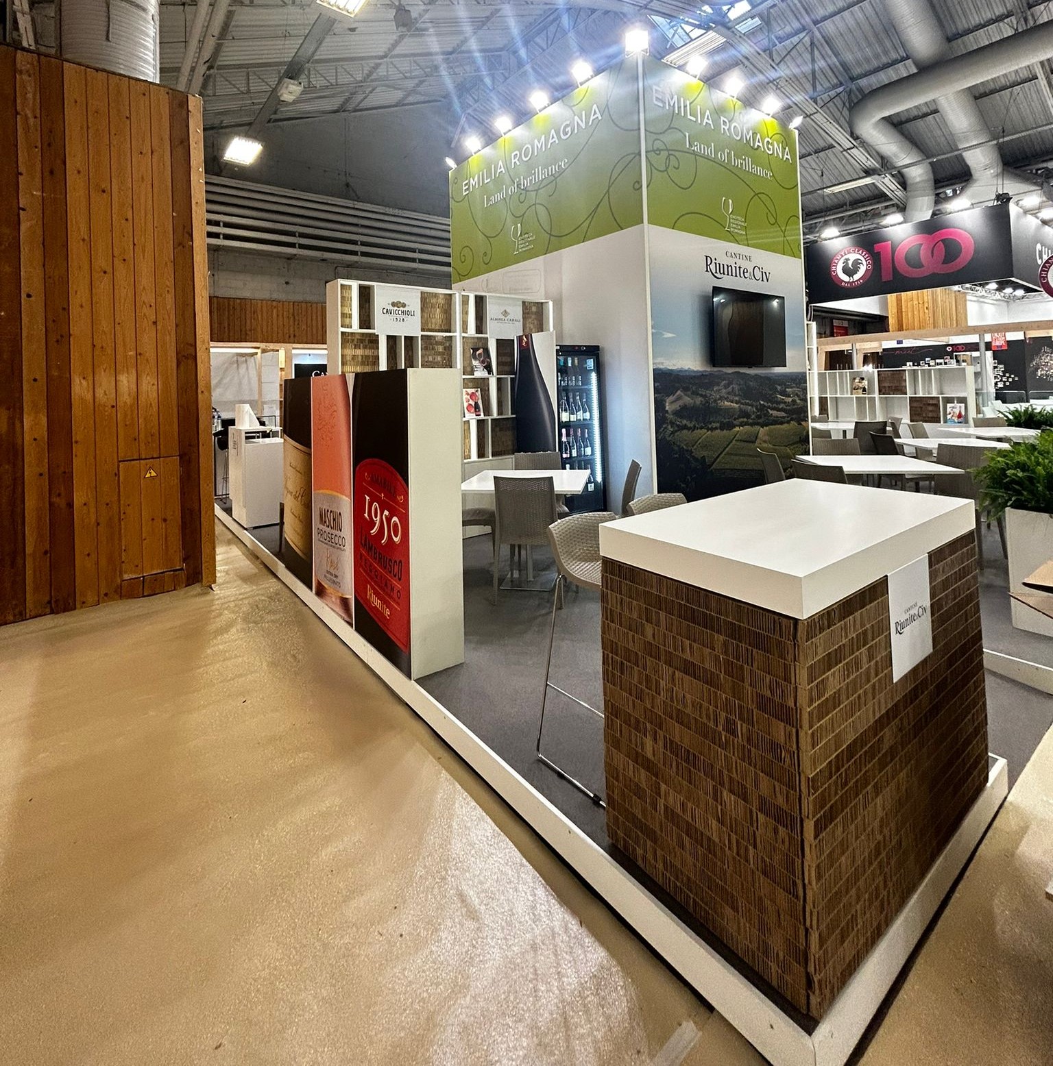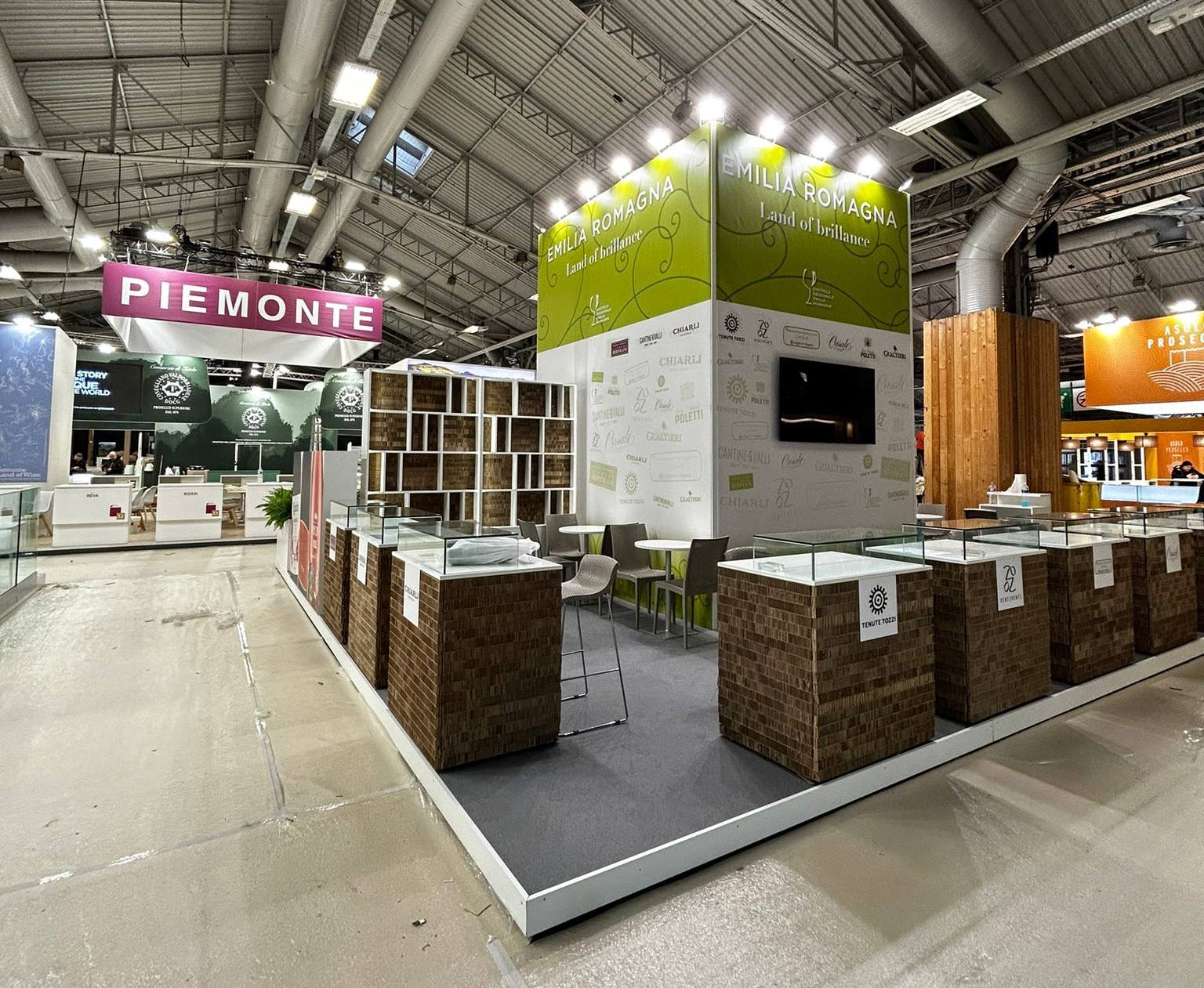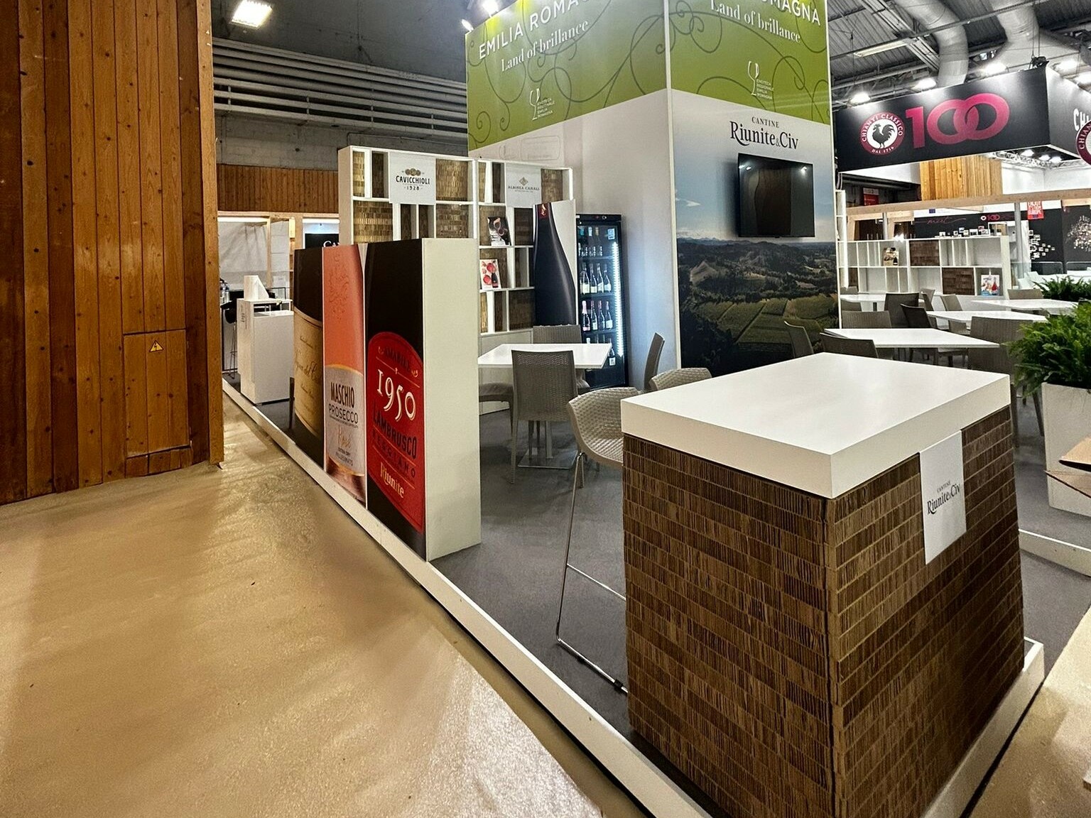 Qui sotto alcune foto dello stand che abbiamo realizzato nel 2024 per l’Enoteca Regionale dell’Emilia Romagna.