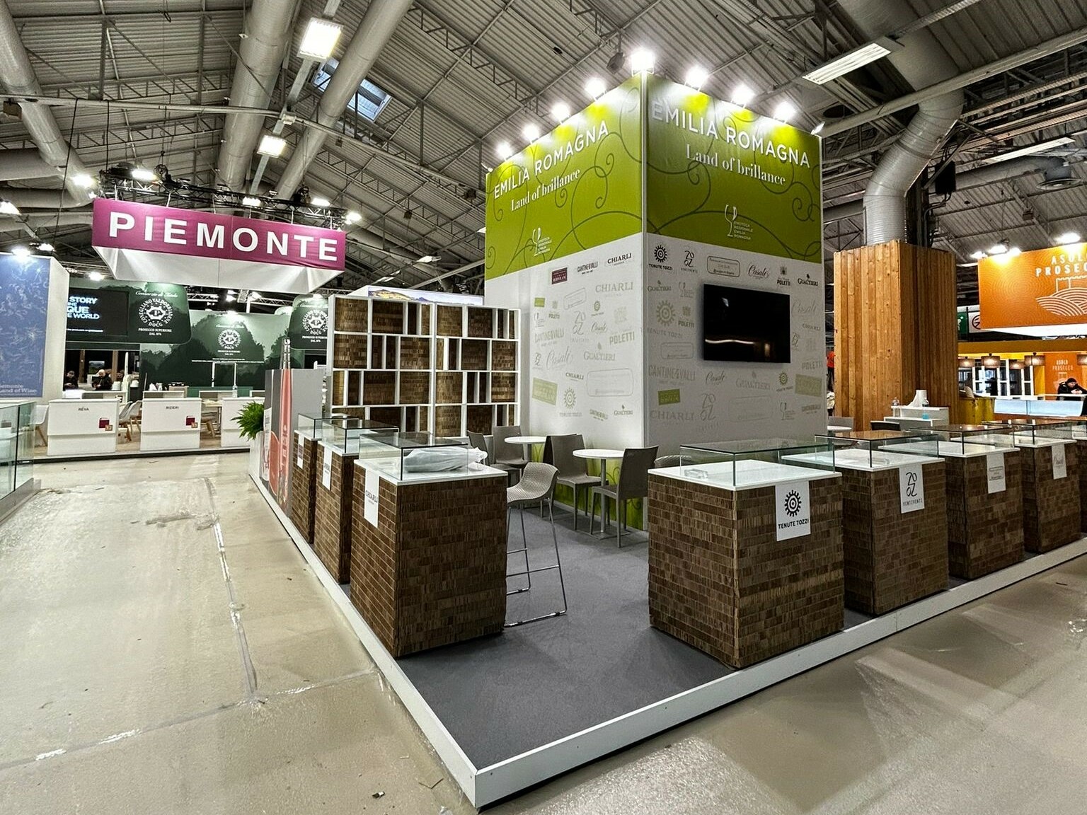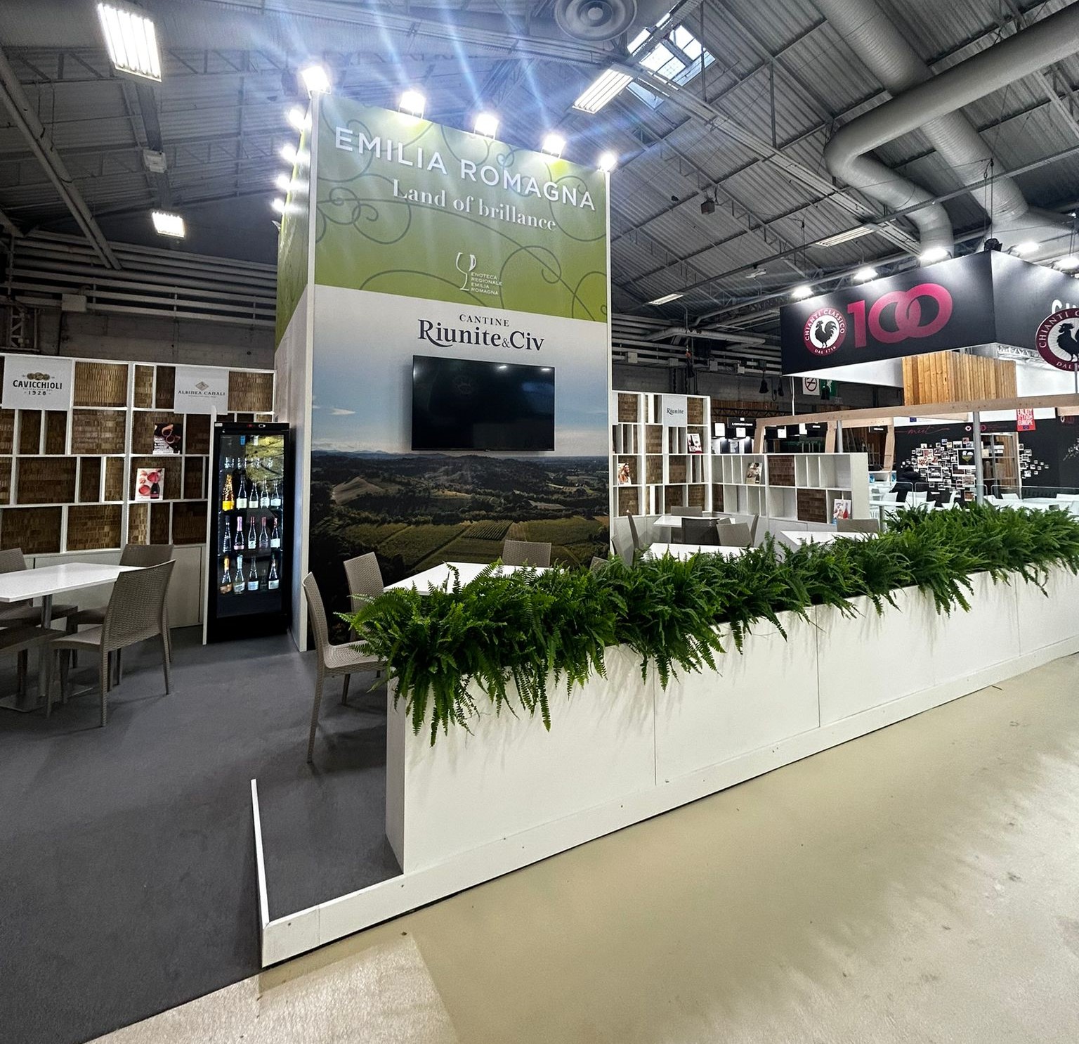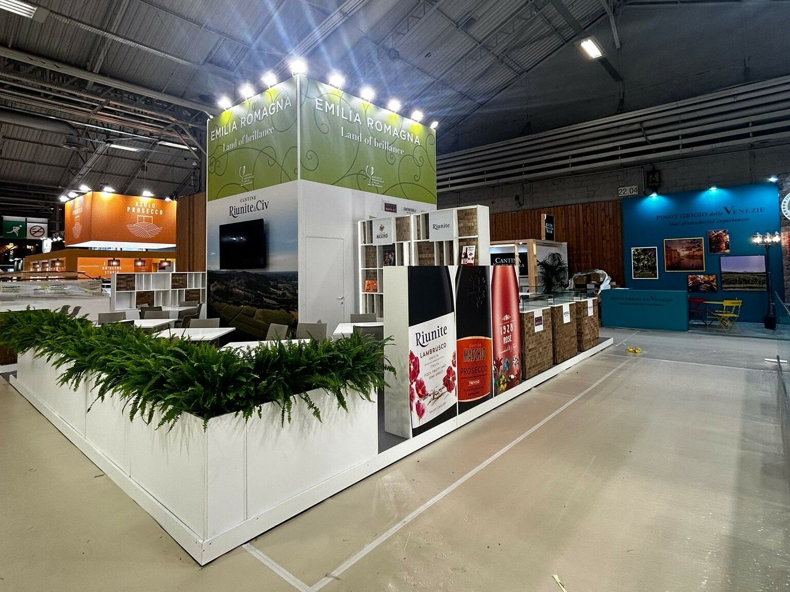 Qui sotto alcune foto dello stand che abbiamo realizzato nel 2024 per l’Enoteca Regionale dell’Emilia Romagna.