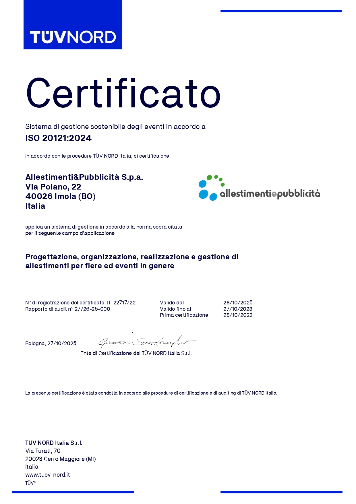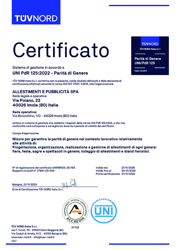 Allestimenti e Pubblicità è un’azienda imolese che da oltre 30 anni si occupa dello studio, del progetto e della realizzazione di soluzioni di allestimento per stand fieristici ed eventi – dal corner espositivo all’allestimento di interi padiglioni – di rilievo sia nazionale che internazionale.